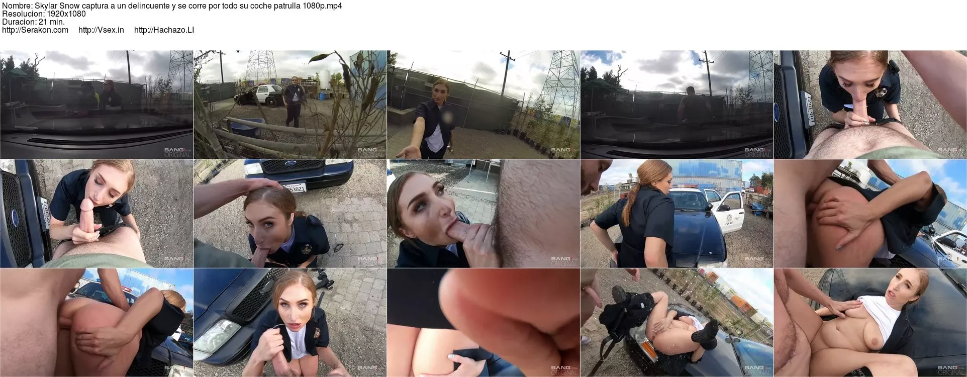 Skylar Snow captura a un delincuente y se corre por todo su coche patrulla
