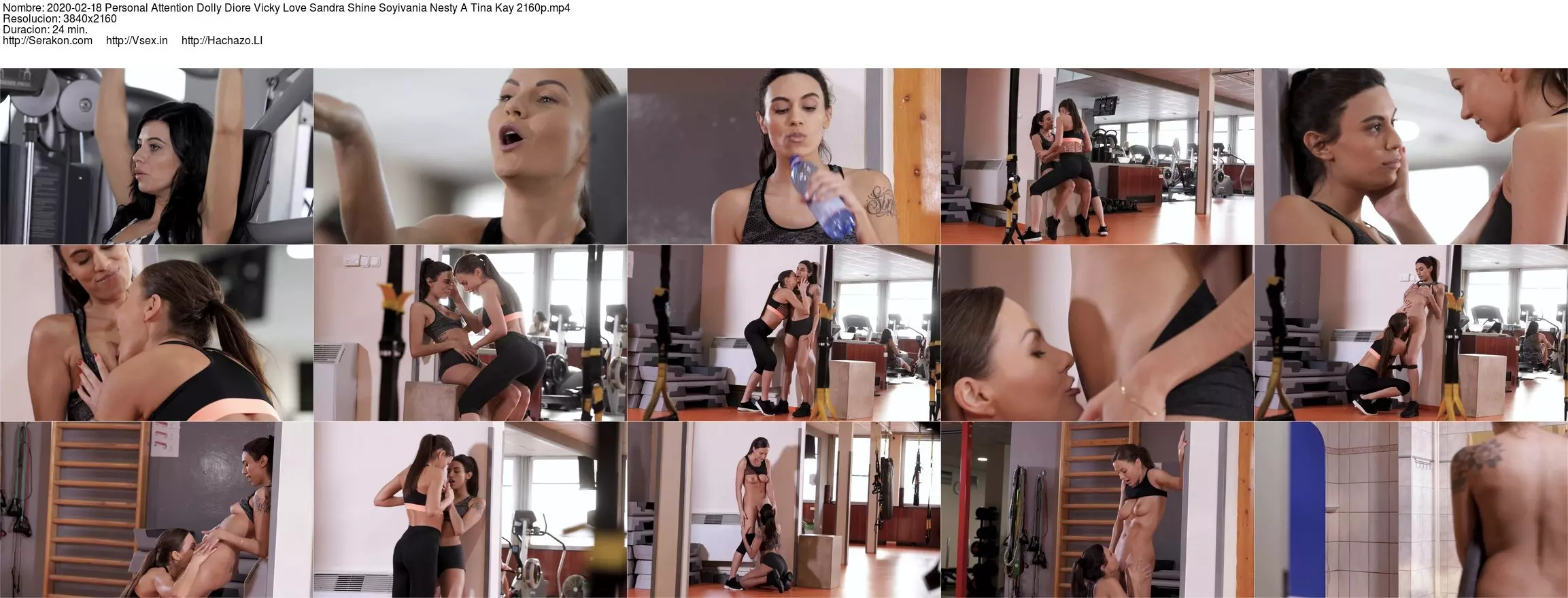 Sexy Hispanic brunette Soyivania is working out at the gym, as Sandra Shine’s hot lesbian movie "Personal Attention" begins. She’s surrounded by gorgeous girls, as Dolly Diore, Nesty and Vicky Love are all working up a sweat, but she only has eyes for stunning Tina Kay, who flirts with her at every opportunity. As she finishes her workout, Tina spontaneously leans in for a kiss, to the amusement of the other girls. They watch as Tina straddles Soyivania’s lap, pulling down her sports bra and sucking her dark nipples. Pushing her up against the wall, Tina thrusts a hand into the Mexican cutie’s tight shorts to rub her pussy, then tugs them down around her thighs and licks her shaved slit. The slender sweetheart goes wild as Tina eats her voraciously, until a sudden interruption reminds them where they are. But as soon as they are alone again, Soyivania begins to squeeze and fondle Tina’s beautiful breasts, then tears down her tight yoga pants and sucks her shaved pussy, making her moan with excitement. When they get caught again, they head to the shower, where Tina eats Soyivania and fingers her from behind, giving her a powerful orgasm. As Dolly hits the shower, Tina and Soyivania move to the locker room; Tina lies on a bench and her new girlfriend licks her to a breathless climax.