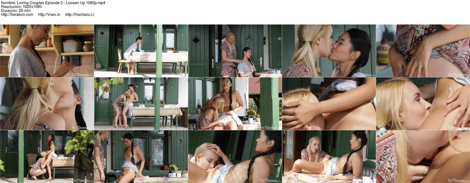 Cute Amaris joins her sexy Asian girlfriend Katana for tea on the terrace, as episode two of Sandra Shine’s erotic series "Loving Couples" begins. Amaris massages her lover’s shoulders, then kisses her neck softly. They embrace tenderly, their kisses growing more heated as Katana’s hands move to her sweetheart’s ass. She pulls down the blonde’s top and fondles her beautiful breasts; Amaris sucks her stiff, dark nipples in return, peeling down her panties and kneeling to lick her shaved pussy. Katana gasps and smiles as her girlfriend’s tongue probes her. She sits up on the table with her legs spread, a flush rising in her freckled cheeks as Amaris eats and fingerbangs her to a powerful orgasm. Now Katana pleasures her lover from behind, one hand on her big breasts, the other sliding into her lace panties. They switch places, Amaris perching up on the table so Katana can lap at her shaved slit, driving her wild.