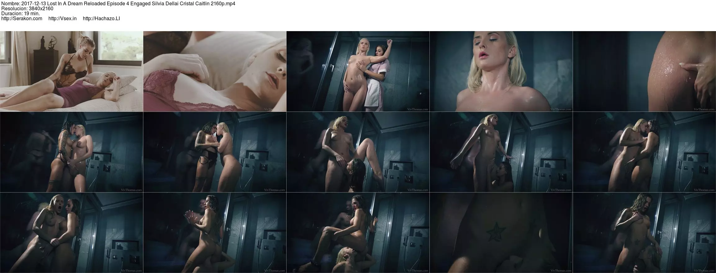 Dressed in sexy lingerie, stunning Silvia Dellai watches her hot blonde lover Cristal Caitlin idly stroke her pussy while she sleeps, as episode four of Alis Locanta’s erotic fantasy "Lost In A Dream: Reloaded" begins. In Cristal’s dream, she is taking a shower, watched by her maid, Silvia. Cristal beckons the gorgeous brunette over to oil up her body, but when Silvia’s hand makes contact with her super sensitive pussy, Cristal pushes her away disapprovingly. Not for long though, and when Silvia’s hand slips between the horny blonde’s ass cheeks and brushes her pussy, dominant Cristal grabs her and tears off her maid uniform, revealing the sexy lingerie she’s wearing beneath it. Drenched and aroused, Silvia lets Cristal fondle and spank her ass, then kneels to eat her pussy until she shudders with pleasure. They grind together, Silvia’s fingers strumming Cristal’s clit as the blonde’s thigh rubs against her pussy. Cristal is first to orgasm, and sinks to the floor to eat Silvia’s soaked, shaved slit voraciously. When she adds her probing fingers, Silvia goes wild, overcome by a powerful climax. Back to reality and Cristal, still rubbing the fleshy folds of her pussy, shivers ecstatically as the dream makes her orgasm, much to Silvia’s evident delight.