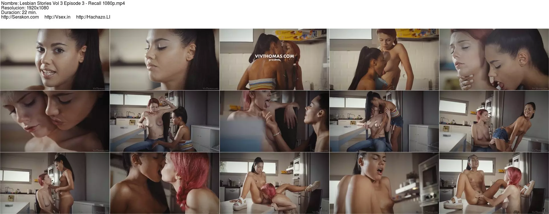 Sexy Apolonia tears off Daniela Dadivoso’s top and bra feverishly, as episode three of Alis Locanta’s scorching "Lesbian Stories Volume 3" begins. The petite beauty gropes and sucks pink-haired Daniela’s magnificent breasts, licking them sloppily, then thrusts a hand into Daniela’s pants to stimulate her pussy. Apolonia does a sexy striptease for her girlfriend, wriggling her pert ass in Daniela’s face, and then sits on the table with her legs spread wide, inviting Daniela to shower her with kisses, from her inner thighs all the way up to her cute tiny breasts. Daniela flickers her tongue over Apolonia’s clit and into her wet slit, driving her wild by thrusting two fingers inside her as she sucks and licks. Apolonia rides her lover’s fingers to an intense orgasm that makes her whole body tremble; once she’s regained her senses, she gets Daniela naked and licks her hot pink pussy skillfully, diddling her clit until she’s literally dripping. She uses a vibrating wand to push Daniela over the edge, grinding it against her clit until she cums like crazy.