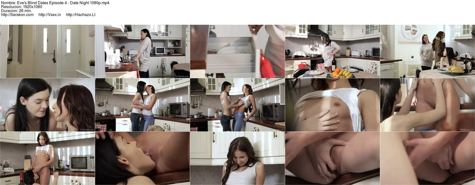 Gorgeous Eve Angel is playing matchmaker again in episode four of "Eve’s Blind Dates," setting up a lunch date between shy Anie Darling and horny Selena Mur at her place. They don’t realize Eve won’t be joining them until she leaves them alone, whispering encouragement in Anie’s ear. Her plan works, and after a few moments Anie takes the initiative and kisses her eager guest, the food forgotten. Now she’s overcome her initial shyness, Anie makes up for lost time, lifting Selena’s top to suck on her stiffening nipples, then sliding a hand into her jeans to rub her pussy. She tugs Selena’s jeans and panties down, kneeling to lick her clit until she’s squirming with pleasure. Selena sits on the counter and spreads her legs wide, Anie licking and sucking her juicy pussy avidly. She stands so Selena can reach her pussy too, and they finger-fuck each other in unison. The girls clear the table ready for the main course – Anie’s sweet pussy, to be devoured with fingers and tongue. She smiles delightedly as Selena kisses all around her smooth slit, teasing her, before lapping at her clit. Anie turns over and Selena spreads her ass wide and licks it eagerly, diddling her pussy until her whole body bucks as she climaxes. Of course, Selena wants to be dessert, bending over the table to let Anie lick and finger her from behind until she orgasms. As the girls kiss, it seems their appetite for each other is not yet sated…