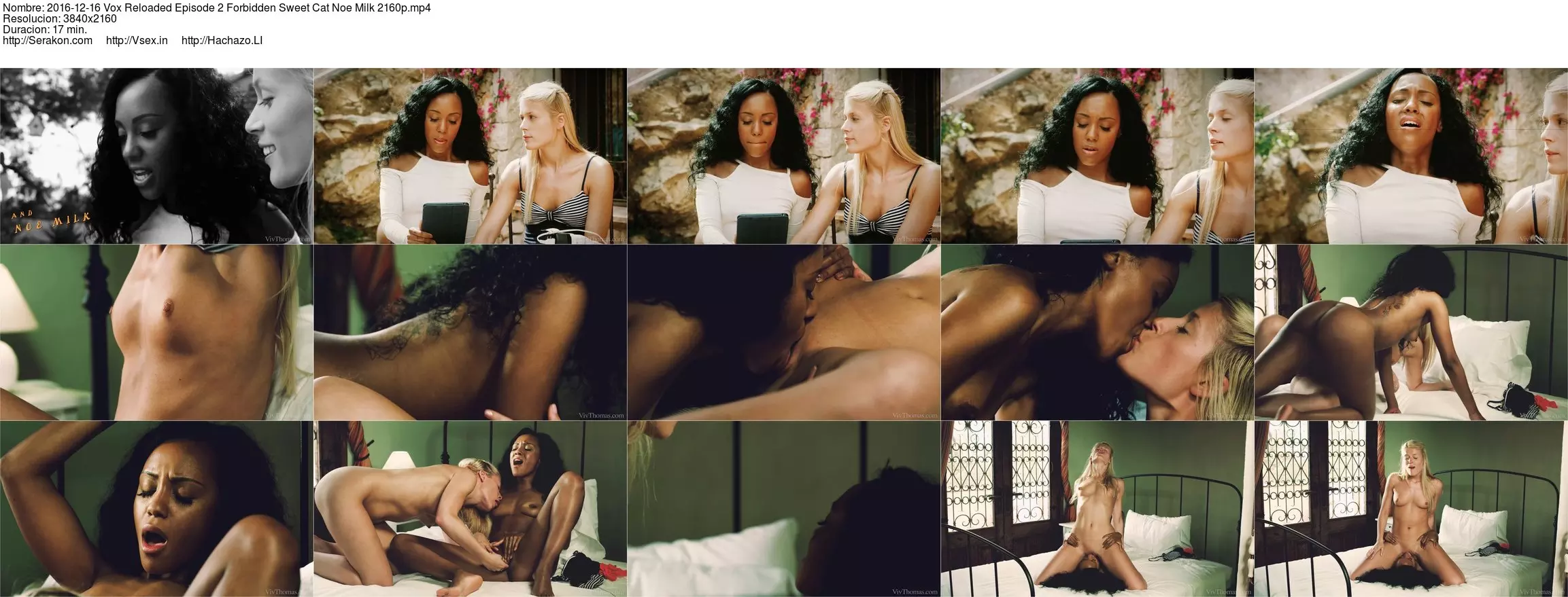 Ebony beauty Noe Milk looks and sounds irresistible as she reads aloud in Spanish. But her concentration is sorely tested by the huge vibrating wand that pretty blonde Sweet Cat is holding against her pussy. Noe gasps as Sweet Cat increases the vibrations, the sensations building until she is unable to continue reading and her orgasm overwhelms her. The girls undress, Noe sucking Sweet Cat’s stiff nipples and kissing her way down to her pussy, fingering and licking her until a climax wracks her slender body. Cat licks Noe’s puffy clit skilfully, thrusting a couple of fingers inside to stroke her to a rapid orgasm. Noe lies back so Cat can straddle her face and ride to another powerful climax.