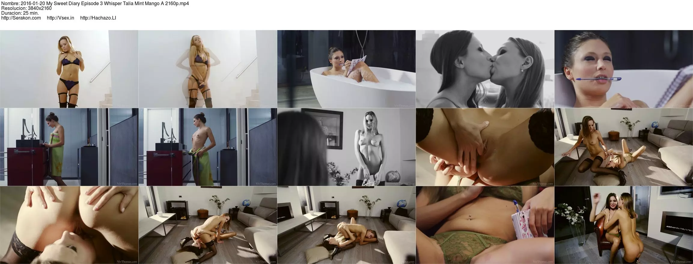 Mango dances sexily over the opening credits, before we see Talia Mint in the bathtub, writing in her diary. She confides that she is attracted to her new work colleague Mango, recounting her dream and masturbating as she fantasizes about the two of them together. Mango performs a slow, seductive striptease, the black and white sequence suddenly flooded with colour as we see her straddling Talia’s face to get eaten. She shudders with pleasure as Talia’s tongue hits the spot, spinning around into a sixty-nine to get rubbed to a climax. Mango slides a hand into Talia’s panties to stroke her, then peels them off, licking and fingering her to a mind-blowing climax.