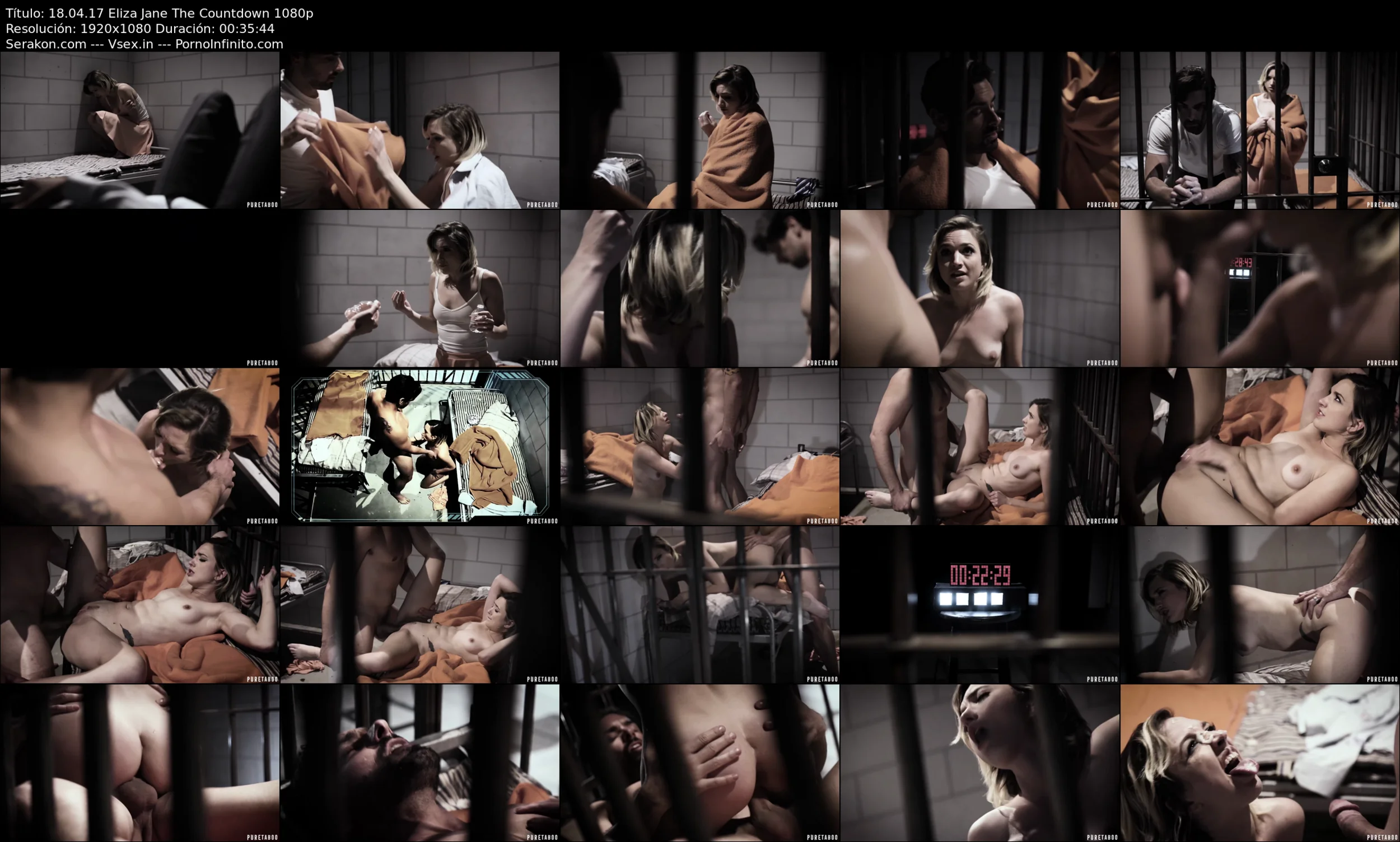 Nora stares at him. Then she looks at the clock. Then looks at the security camera, she walks towards it. She takes off her tank top revealing her breasts. A green light flashes, and the clocks beeps fast-forwarding to 09:59:59. Alan in horror tries to look away muttering 'what are you doing?'. She pulls down her skirt and panties. The green light flashes, and the clocks beeps fast-forwarding to 00:04:59:59.